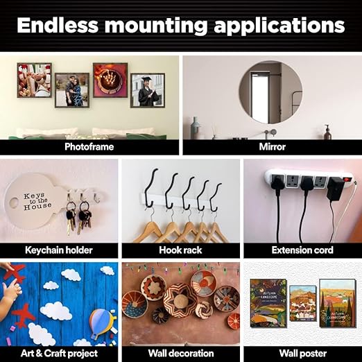 • Applications: Perfect mounting tape for hanging photo frames, mirrors, decor, etc.