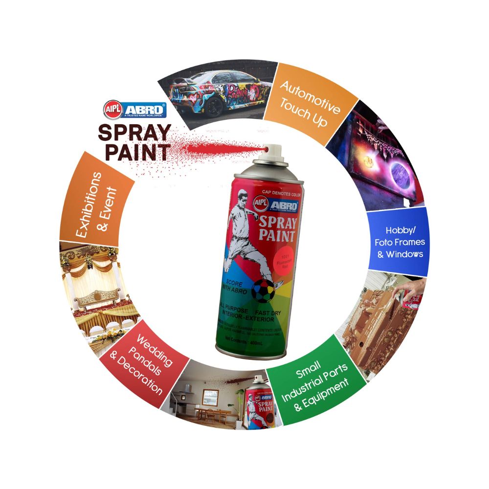 FOR EVERY APPLICATION : No matter whether you are looking for a spray can to start painting from scratch or just touching up a scratched part, Abro Spray Paint can be applied over any factory applied finish to perfectly match the surface.