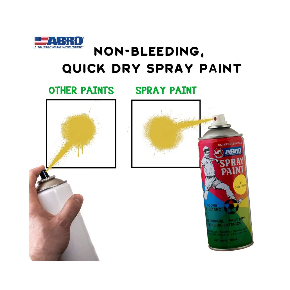FOR EVERY APPLICATION : No matter whether you are looking for a spray can to start painting from scratch or just touching up a scratched part, Abro Spray Paint can be applied over any factory applied finish to perfectly match the surface.