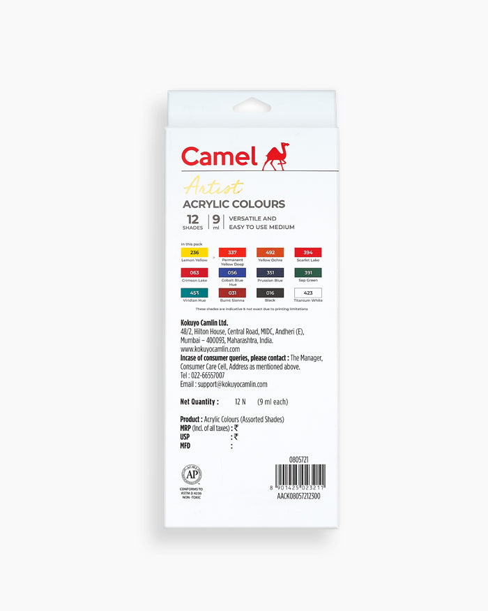 Home / Products / CAMEL, Acrylic Colours - ARTIST | Set of 12 | 9 ml.