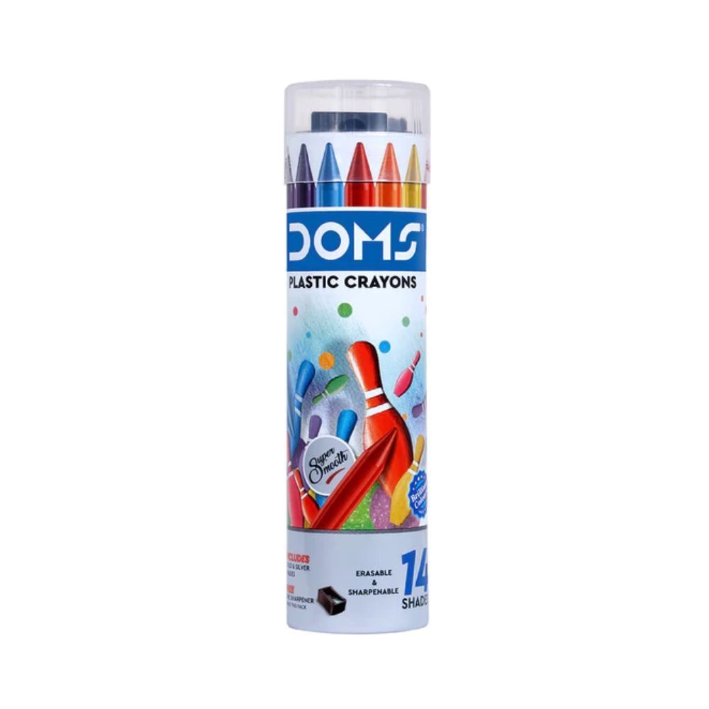 Experience vibrant and smooth coloring with DOMS Plastic Crayons. This set of 14 gives you a wide range of colors to choose from for your artwork. The durable plastic material allows for easier sharpening and longer lasting use, making it a great choice for artists and students alike.