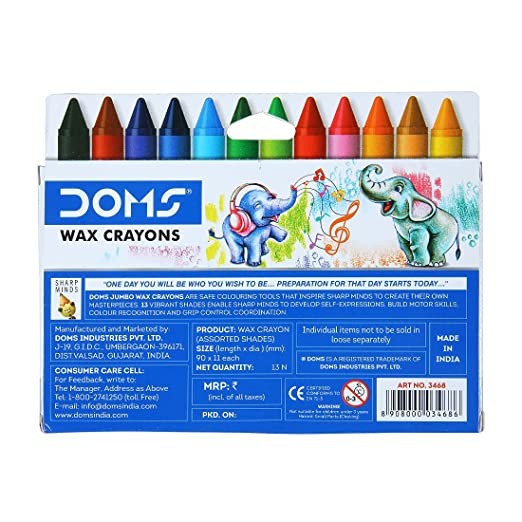 Introduce your child to the world of art with DOMS Wax Crayons - JUMBO, a set of 12 vibrant colors. These jumbo-sized crayons are perfect for little hands, providing a smooth and even color application. Let their creativity soar with this high-quality set, made for young artists.