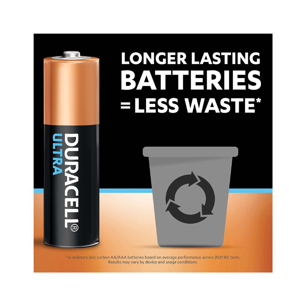 Longer Lasting Batteries = Less Waste* *Vs ordinary zinc carbon AA/AAA batteries based on average performance across 2021 IEC tests. Results may vary by device and usage conditions