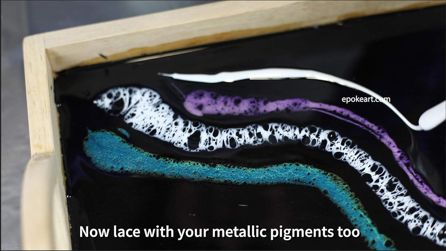 EPOKE cell Serum is a liquid repulsive additive that can be mixed with freshly mixed and pigmented art resin to create cells with any color.It's the perfect lacing liquid. Works well with Pigment pastes, Pigments powders, or any other resin pigments