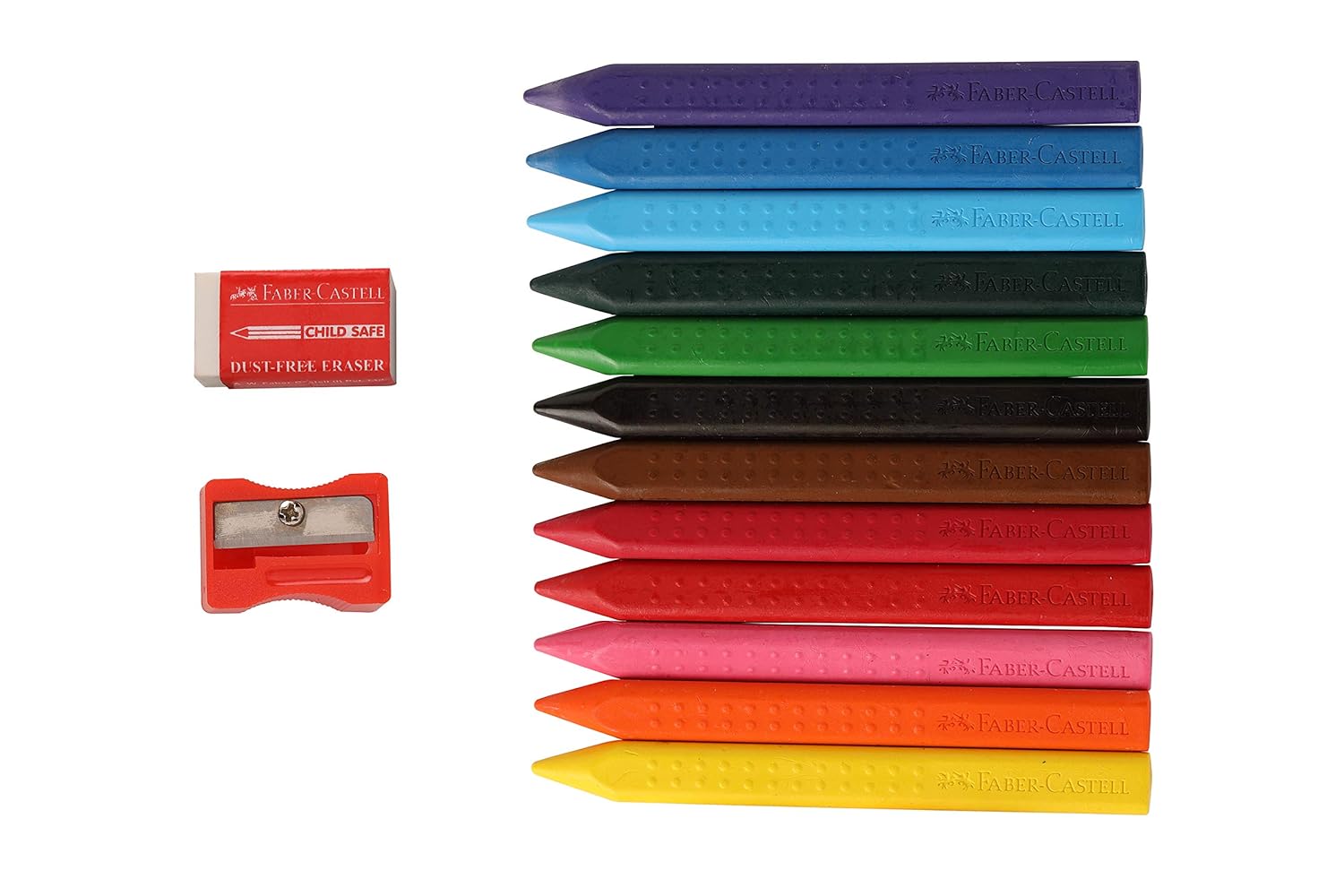 FABER CASTELL, Plastic Crayons - GRIP | ERASABLE | Set of 12.