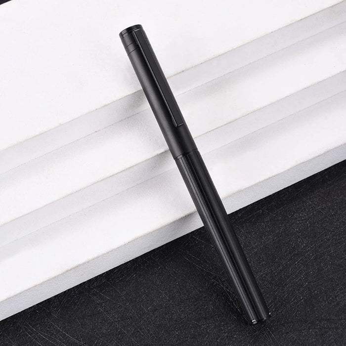 The pen was made from aviation aluminum and finished with premium black lacquer for durability. A comfortable and ergonomic stripe shape is combined with superior craftsmanship for long-time writing.