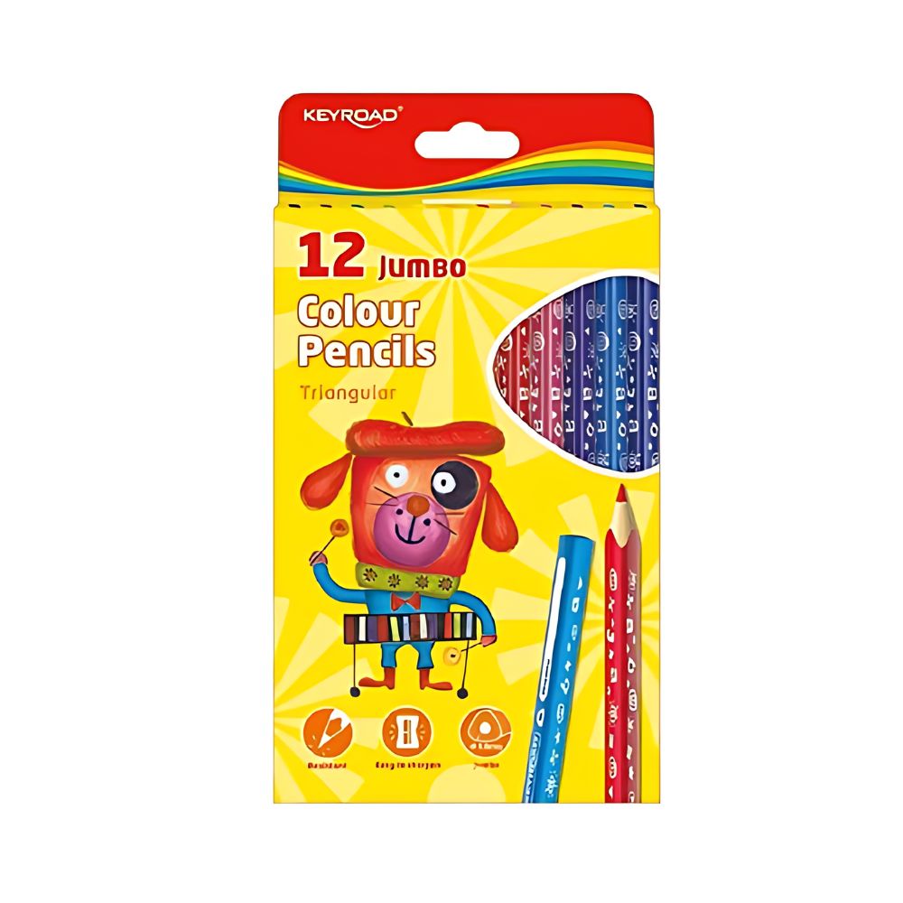 Keyroad coloured pencils Jumbo ergonomic triangles, with soft and colour-intensive lead. Ideal for colouring books, school for relaxed writing and drawing - adults and children.
