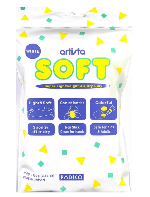 Artista Soft is extremely lightweight, flexible, non-toxic air dry clay. The soft clay is ideal for baby hand prints, flowers, sweets & deco, accessories, and other craft projects. Adding water, the clay becomes creamy and can be used for fake sweets decorations.