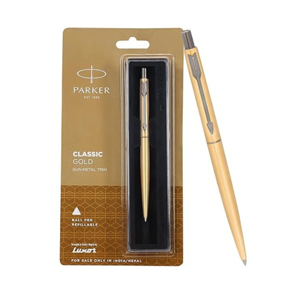 Home / Products / PARKER, Ballpoint Pen - CLASSIC | Gold | Gun Metal Trim | Fine.