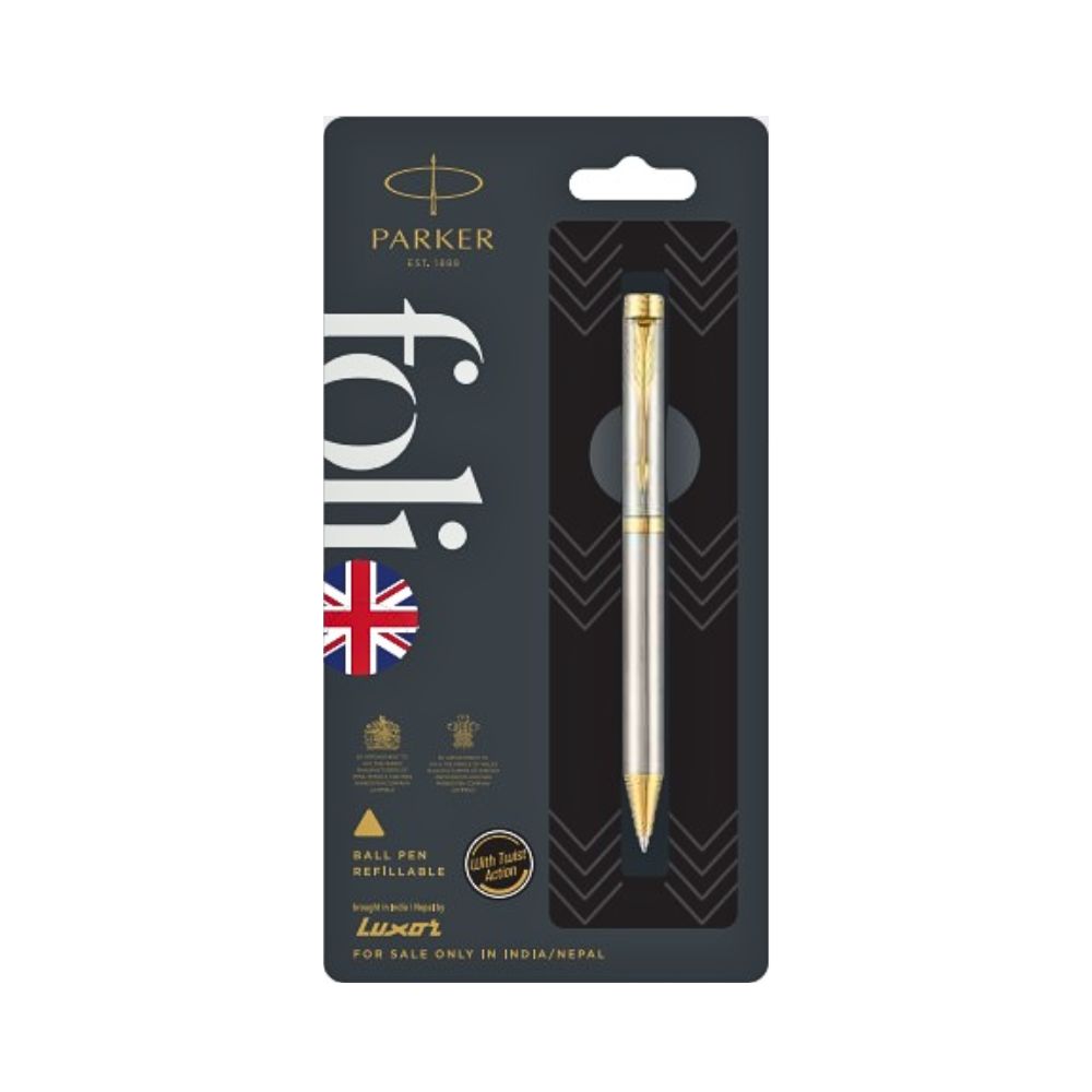 PARKER, Ballpoint Pen - FOLIO Stainless Steel | Gold Trim | Fine.