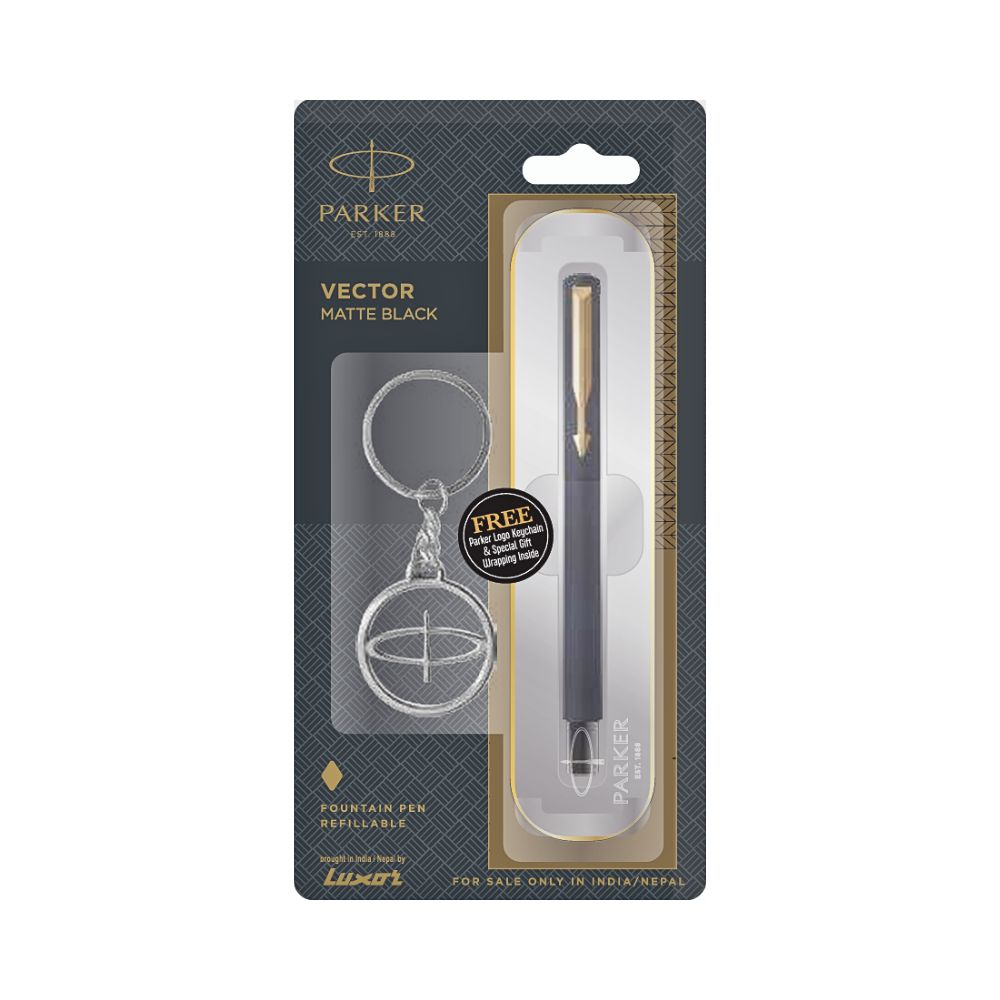 PARKER, Fountain Pen - VECTOR Matte Black | Gold Trim | Fine.