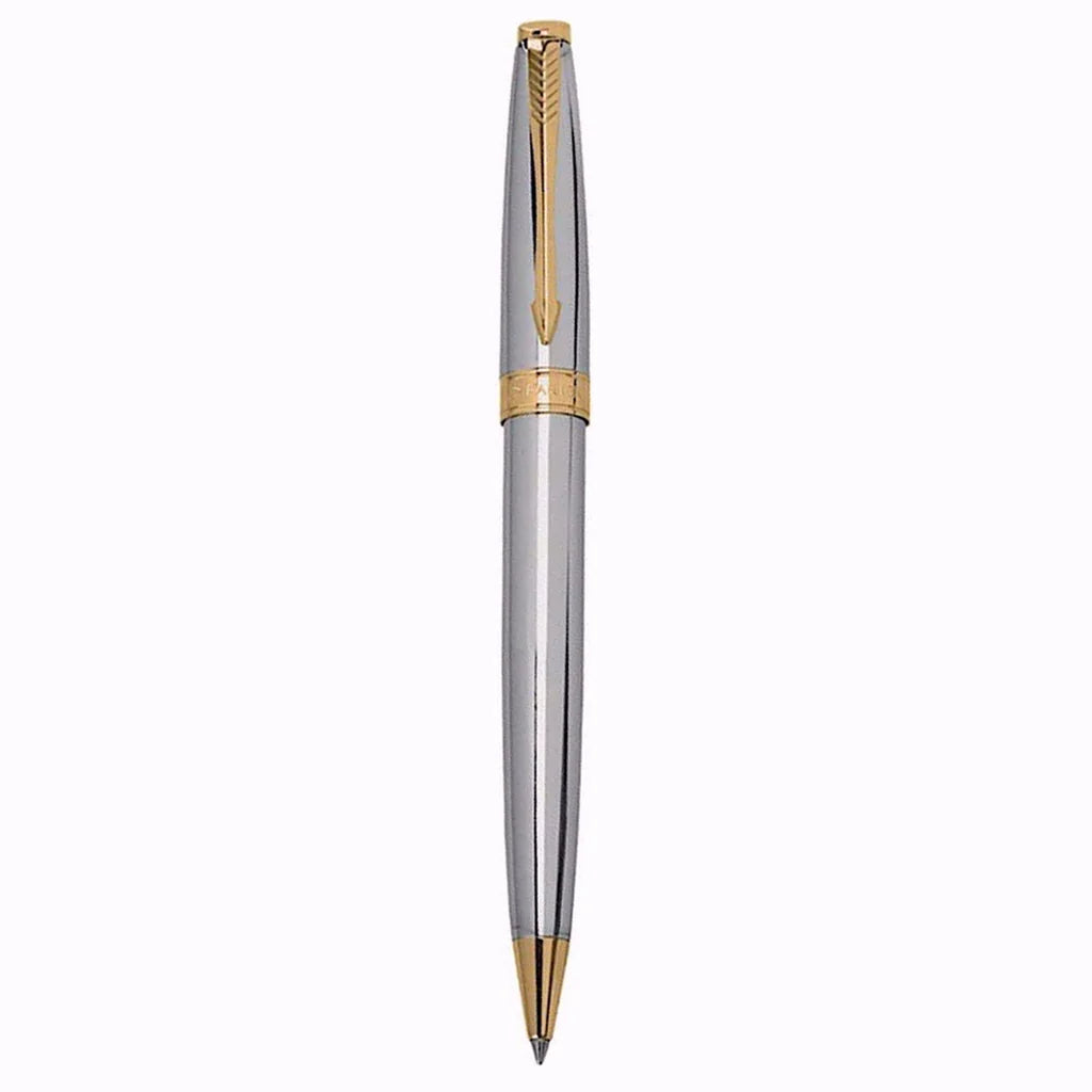 PARKER, Gift Set - Ballpoint Pen + Notebook | Fusion Shiny Chrome | Gold Trim.