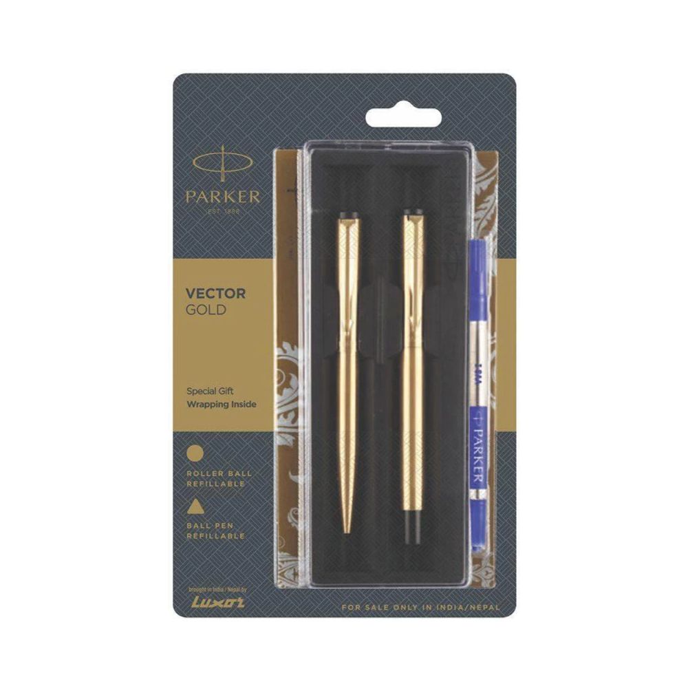 PARKER, Gift Set - VECTOR Gold Gold Trim Rollerball Pen + Ballpoint Pen | Ultra Fine.