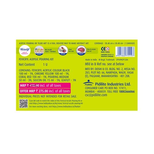 Enhance your art skills with the PIDILITE Acrylic Pouring Kit. This kit contains everything you need to create unique and vibrant acrylic pour paintings. With high-quality materials and easy-to-follow instructions, the possibilities are endless. Perfect for beginners and experts alike, this kit is sure to bring your creations to life.
