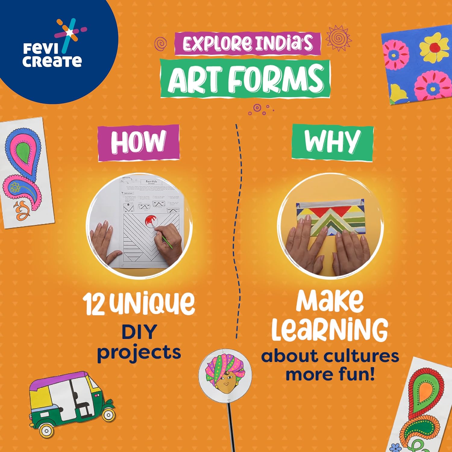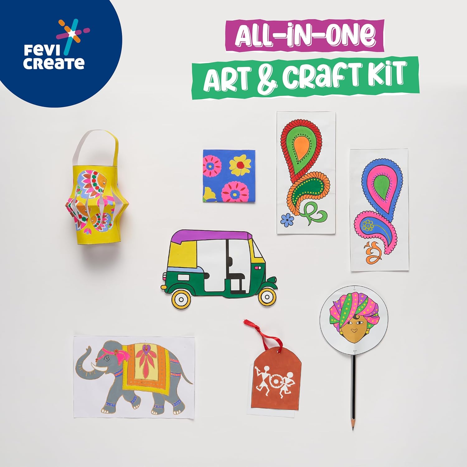 This kit contains 12 unique projects for kids, Rangeela Tempera, Rangeela Glitter, Fevicol MR, and Prime Tape.