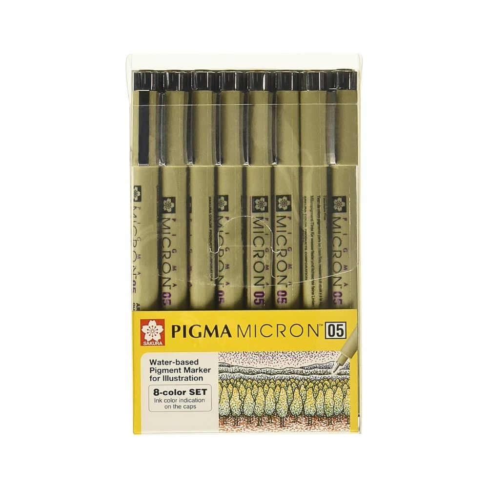 Introducing SAKURA's Fineliner Pen - PIGMA MICRON, available in a set of 8 with a 0.5 mm tip. With its precise line width and archival quality ink, this pen is perfect for all your writing and drawing needs. Experience professional quality and precision with SAKURA.
