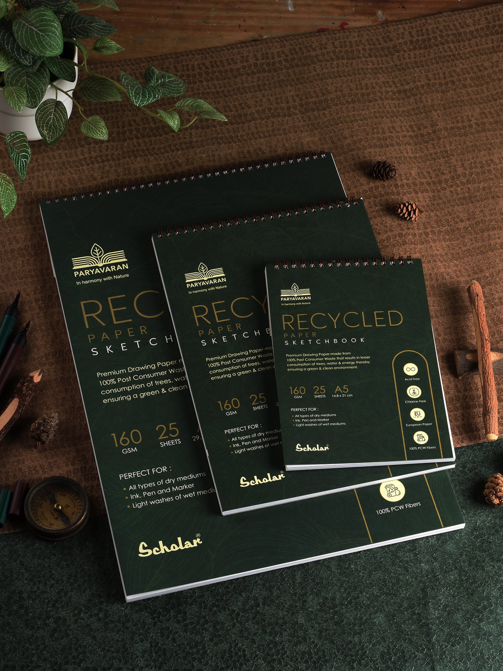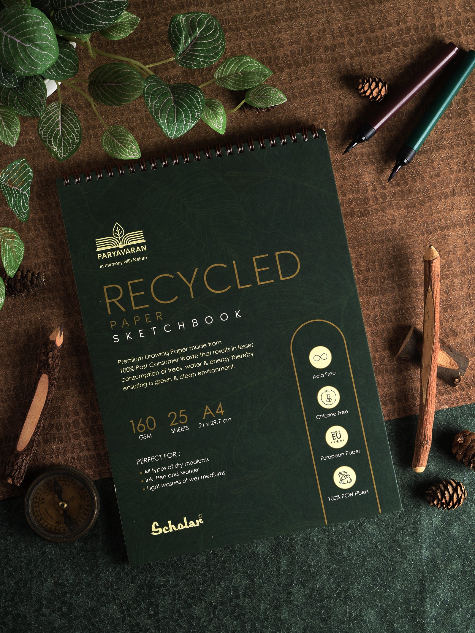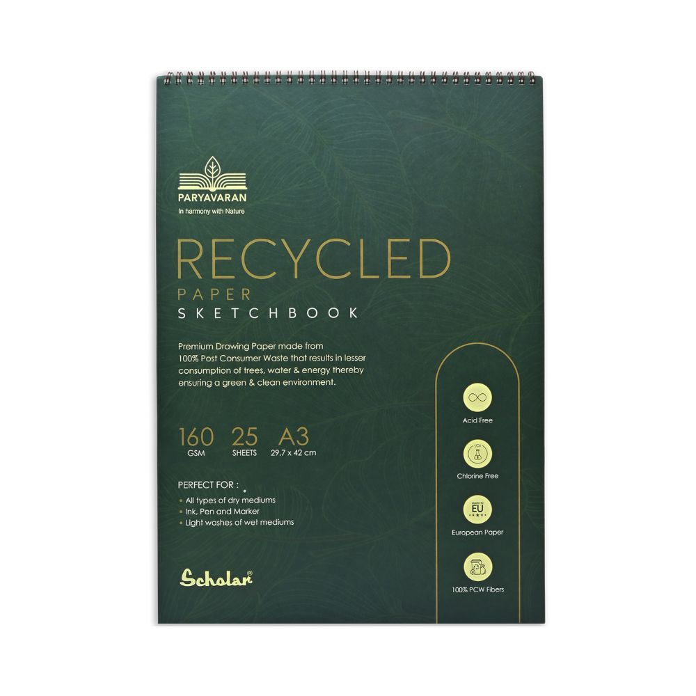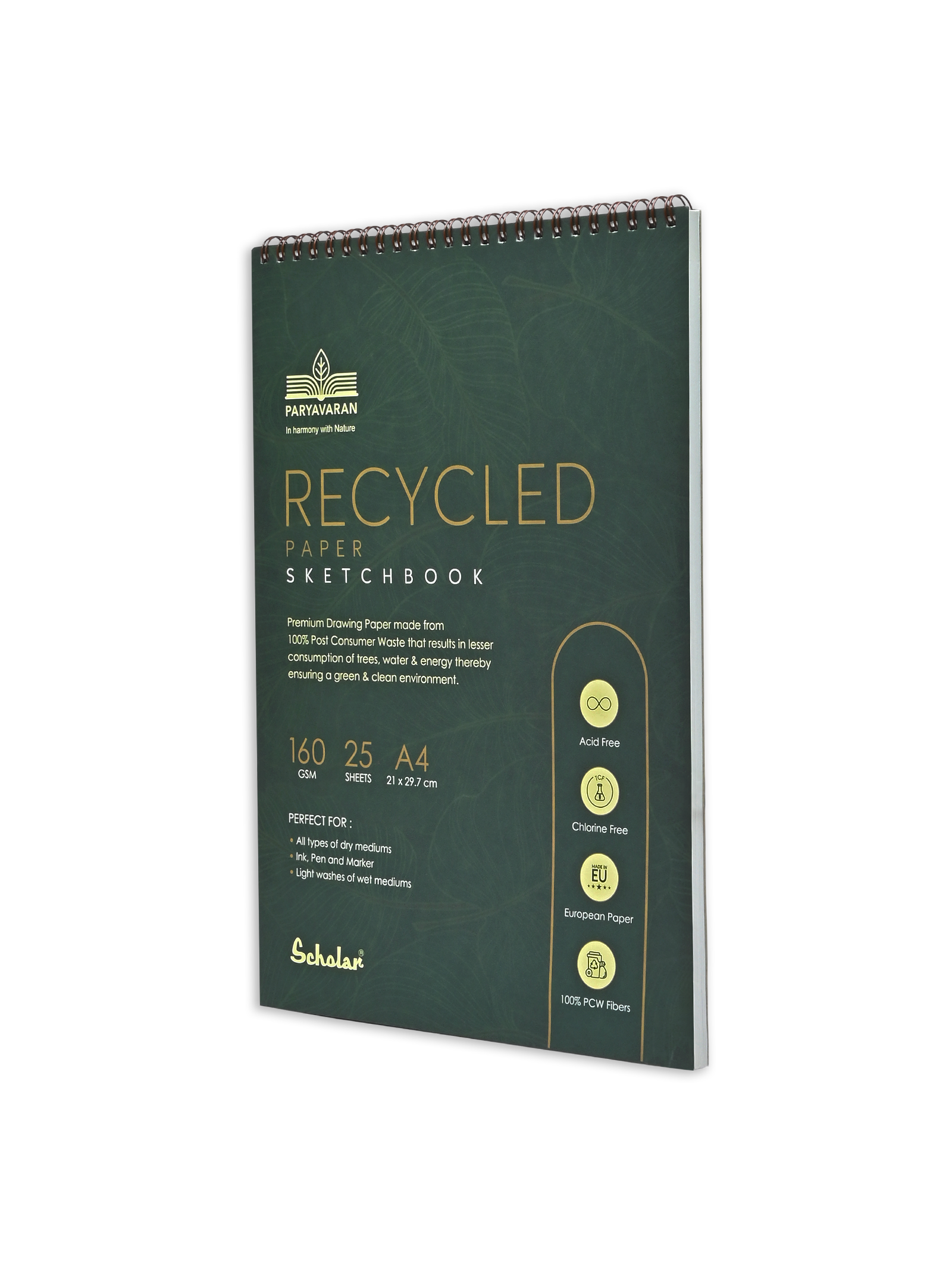 SCHOLAR, Sketch Book - Recycled Paper | 25 Sheets | 160 gsm.