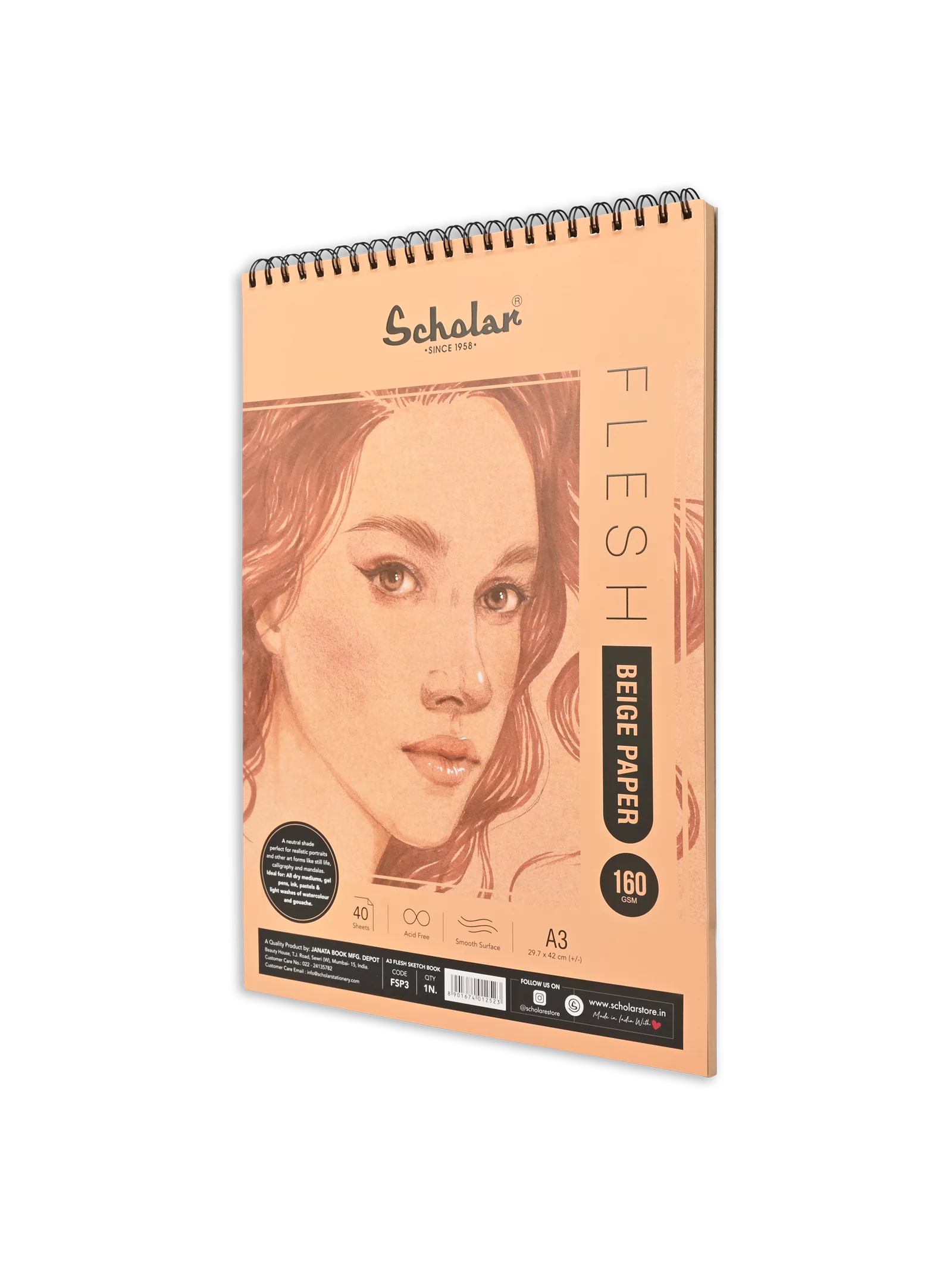 SCHOLAR, Toned Pad - Flesh Beige | 40 Sheets | 160 gsm.