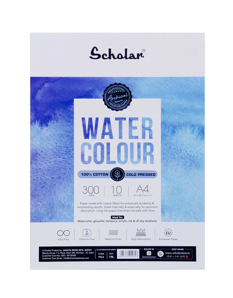 SCHOLAR, Watercolour Sheets | 10 Sheets | 300 gsm.