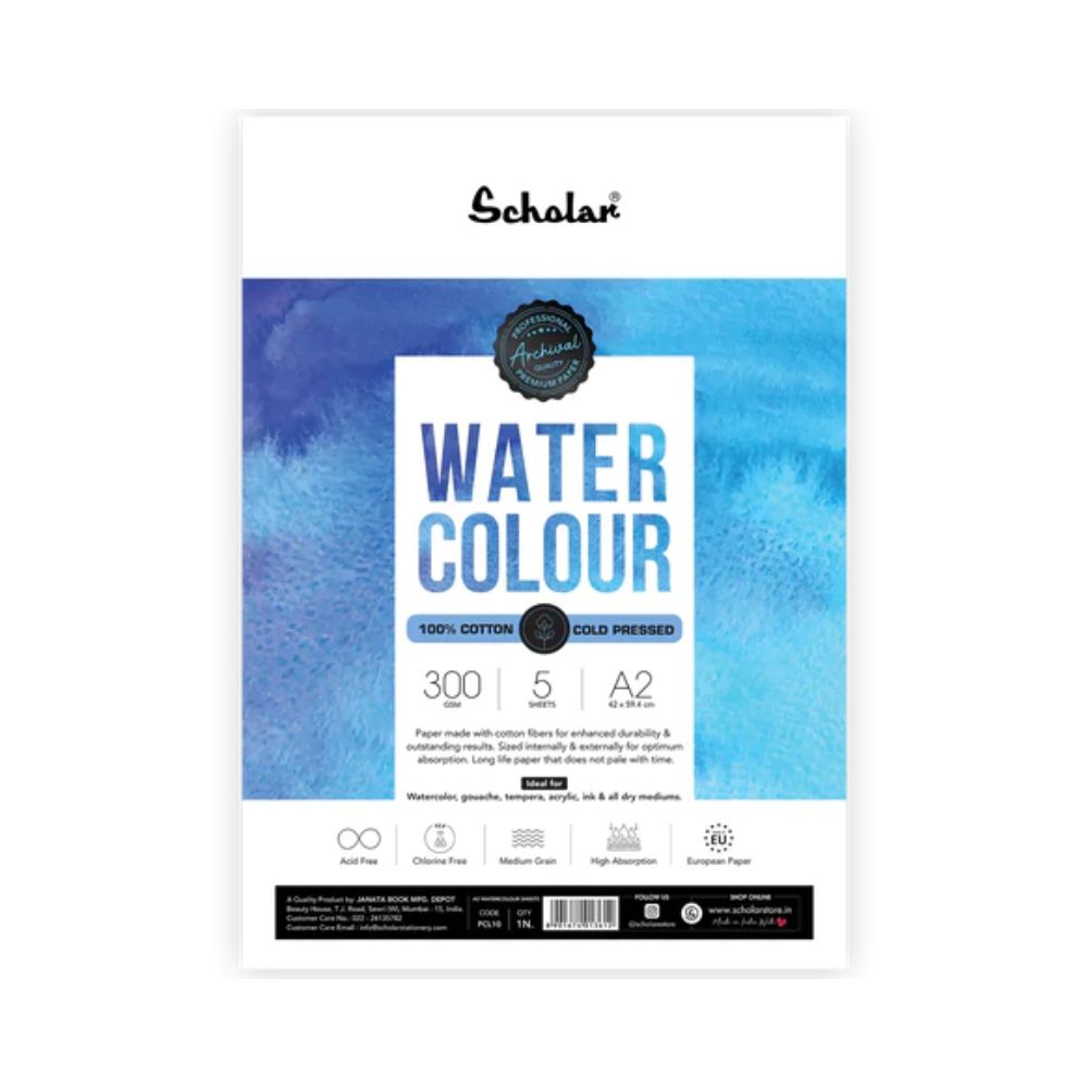 SCHOLAR, Watercolour Sheets - Professional | 5 Sheets | 300 gsm.