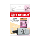 The STABILO BOSS MINI Pastellove highlighter in a pack of 3 with the colors dusty grey (194), pale orange (125), frozen fuchsia (158) - limited edition.