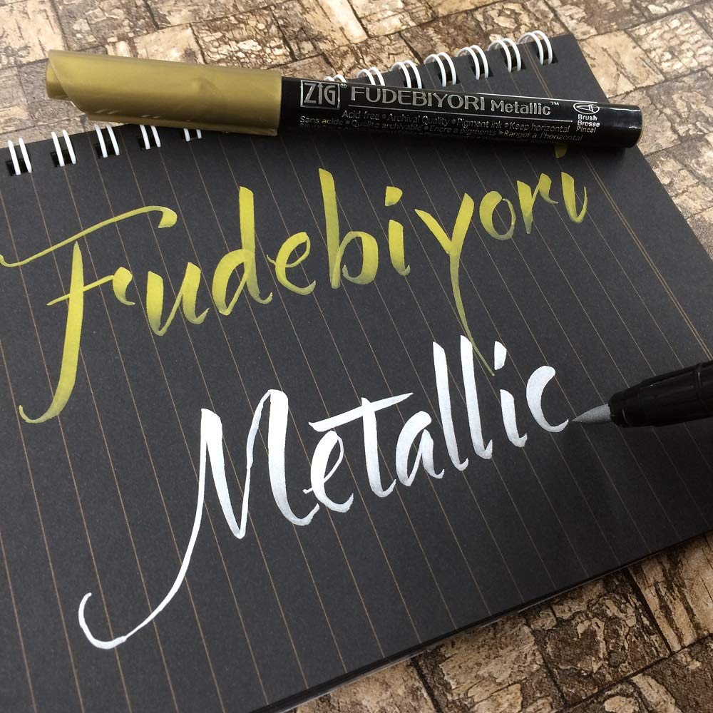 ZIG Fudebiyori Metallic pens are a water-based pigment with a semi flexible hard brush tip allowing you to easily control strokes and lettering. Effective on dark colored papers